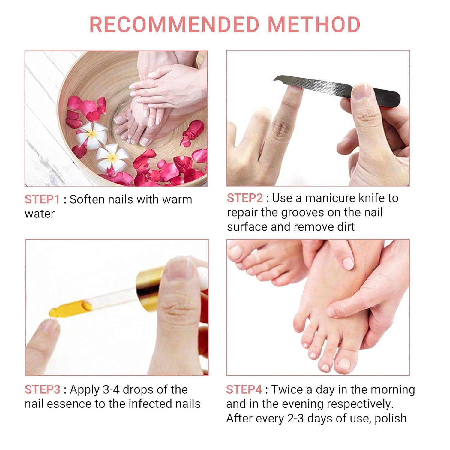 তারপর ওষুধের মধ্যে দেয়া কাটার দিয়ে ভালোভাবে নখ গুলো পরিষ্কার করে নিন। এরপর দুই ফোঁটা করে প্রতিটা নখে করুন প্রতিদিন দুইবার।